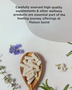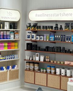 The Pharmacy and supplement shop offers an elaborate selection of powerful vitamins and medicines that serve as an essential component to your long-term treatment plan. As you savor the holistic experience of Maison Sante, healthy bites and bespoke organic beverages are available to bestow an overall sense of ease and well-being.